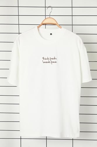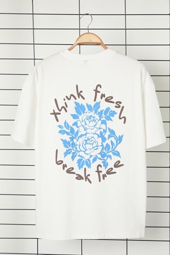ترنديول تيشرت قطن سميك 100% مطبوع عليه زهور وقصة واسعة للرجال مقاس كبير TMNSS25TS00028