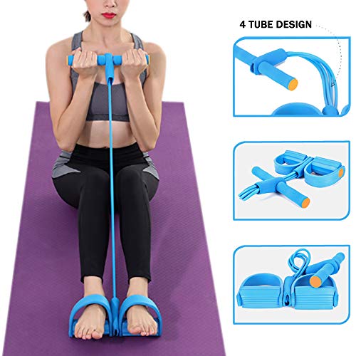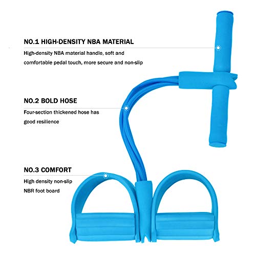 حزام مقاومة بدواسة، حبل سحب مرن من 4 أنابيب، حبل سحب لتمارين الصدر واللياقة البدنية، أشرطة تمرين محمولة للتمرين في المنزل وللتدريب على التخسيس واللياقة البدنية من DUT (لون ازرق)