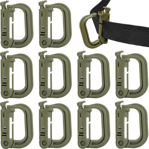 مشابك حلقية متعددة الأغراض على شكل حرف D، حلقة تثبيت بلاستيكية، حلقة تسلق تكتيكية لأشرطة مولي، 10 قطع