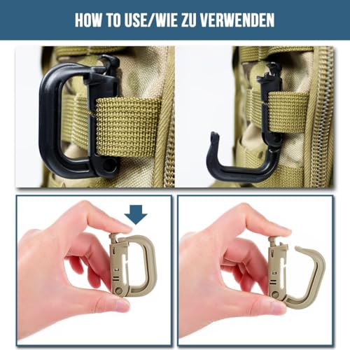 - [مريح في الاستخدام]: مشبك الإغلاق التكتيكي يفتح ويغلق بسرعة، مما يحمي أغراضك بأمان من السقوط. سهل التشغيل، مما يضمن لك الوصول بسرعة إلى العناصر التي تحتاجها في أي موقف.