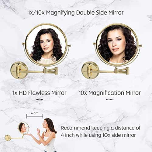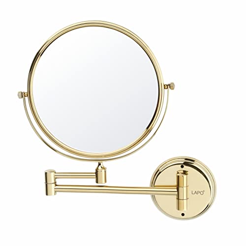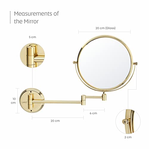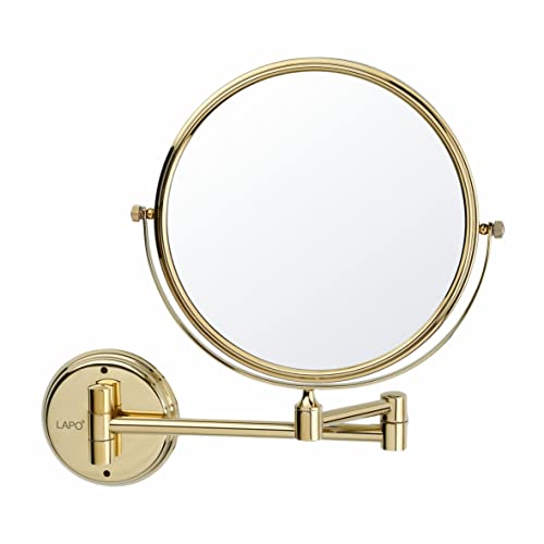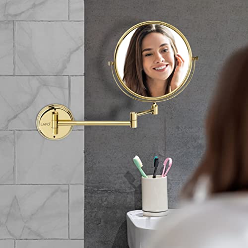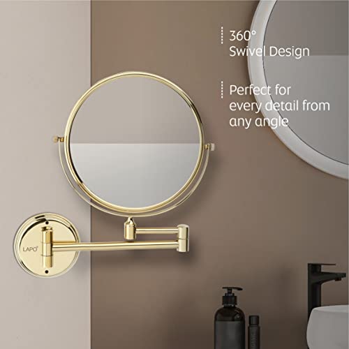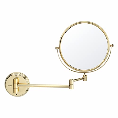 مرآة حمام من الفولاذ المقاوم للصدأ من الدرجة 304 مزدوجة مع رؤية مكبرة من لابو/ مرآة دوارة بزاوية 360° للمكياج، الحلاقة، وغسل الوجه / تعديلات طويلة وقصيرة، تكبير 10X، لمسة نهائية بلون ذهبي، مقاس 20 سم