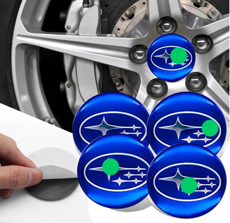 طقم غطاء محور اطارات السيارة لصق مقاس 56 ملم، أغطية مقاومة للغبار والصدأ والماء، ملحقات لاصقة لتزيين جنط العجلة متوافقة مع سوبارو ازرق - من كابر تريد