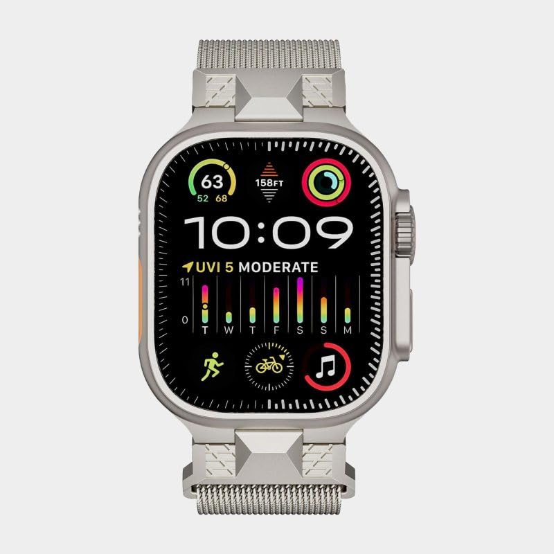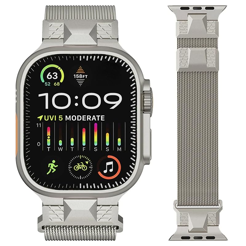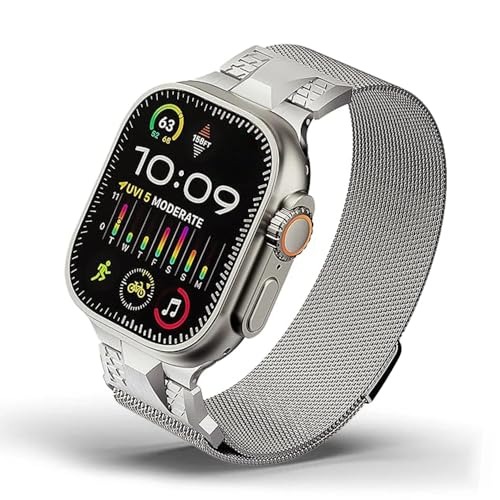 سوار شبكي من في فولت متوافق مع ساعة ابل الترا 2 و الترا 49 ملم و سلسلة 9 و 8 و 7 45 ملم، مصنوع من الستانلس ستيل للجنسين، مقاس 15.5-26 سم