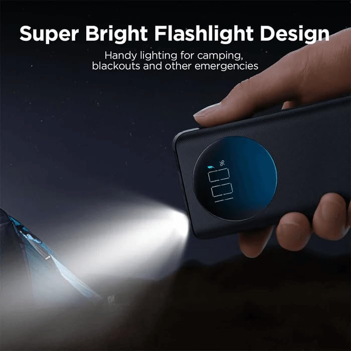- كشاف يدوي مدمج: تم تجهيز شاحن الباور بانك بكشاف يدوي مدمج، مما يضيف طبقة إضافية من الوظائف. هذه الميزة مفيدة في سيناريوهات مختلفة، مثل حالات الطوارئ أو الأنشطة الخارجية أو عندما تحتاج إلى إضاءة إضافية في حالات الإضاءة المنخفضة.