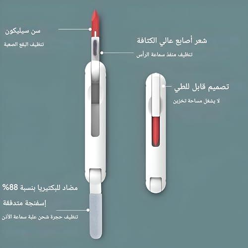 - مجموعة التنظيف الإلكترونية 7 في 1 هذه هي حل شامل للحفاظ على نظافة الأجهزة المختلفة. إنه مثالي لأي شخص يتطلع إلى الحفاظ على إلكترونياته في حالتها الأصلية، مما يجعله إضافة قيمة لأي روتين للعناية التقنية.