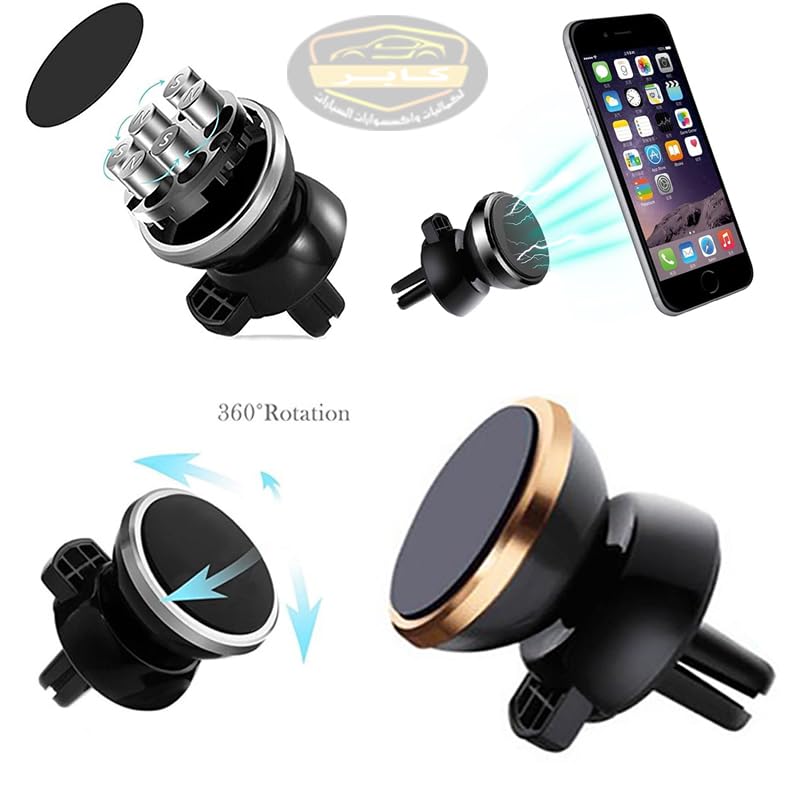 حامل هاتف محمول للسيارة مغناطيسي قوي 360 درجة يثبت على فتحة التهوية لأي هاتف ذكي (دهبى كود: 1495) - من كابرمصر 2020