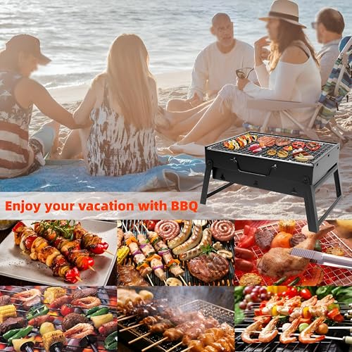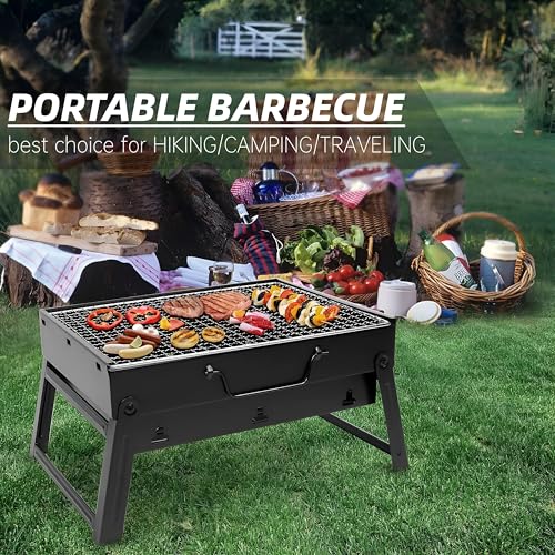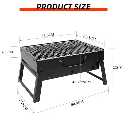 شواية فحم محمولة قابلة للطي مثالية للسفر والتخييم والمغامرات الخارجية مقاس 43.5 × 29.5 × 23 سم، تصميم خفيف الوزن لنقل سهل