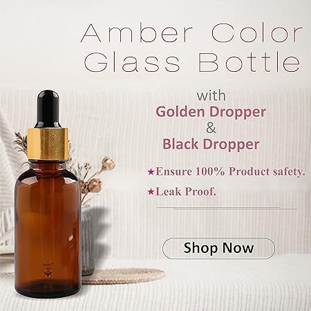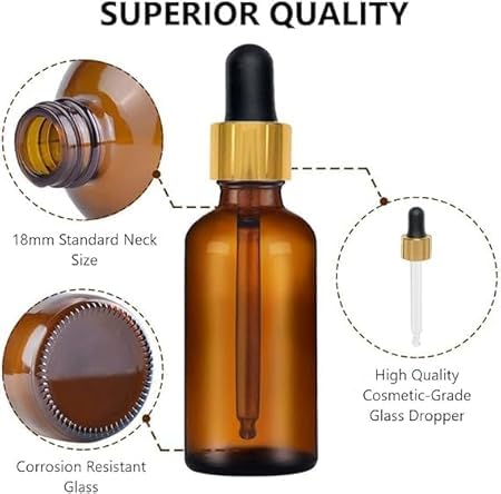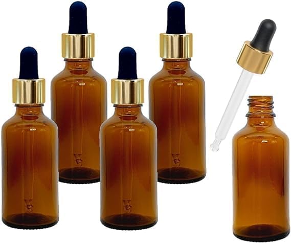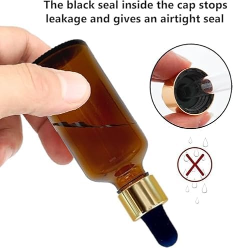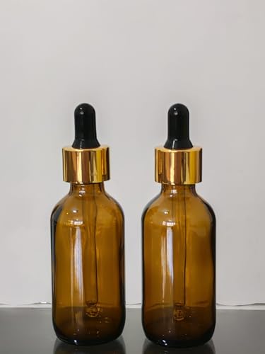 مجموعة من 2 قطارة ( قطارتين ) زجاج 50 مل كهرمانية داكنة بغطاء ذهبى معدنى فاخر و كاوتش اسود