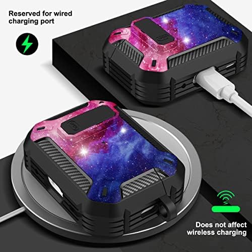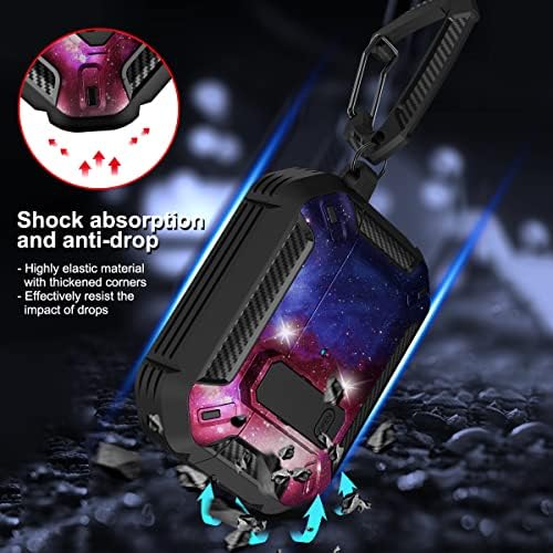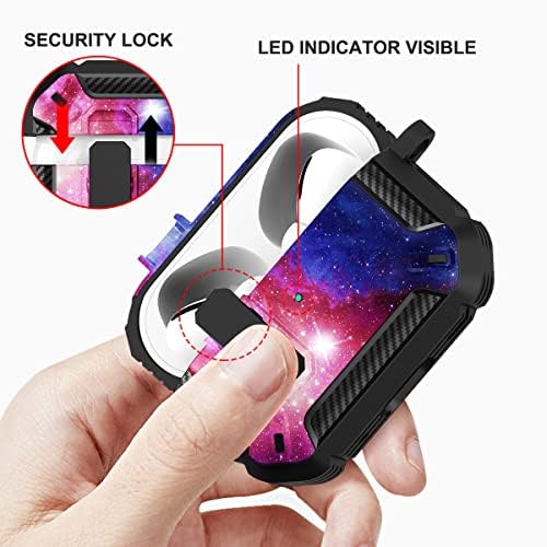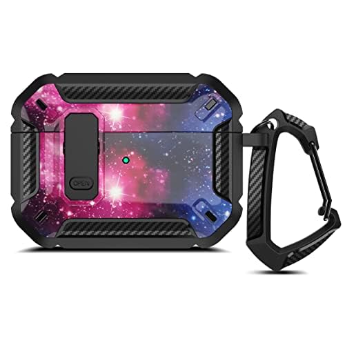 جراب مضاد للصدمات من الموعز لسماعات ايربودز برو الجيل الثاني (2022) للرجال والنساء مع قفل وحلقة تثبيت، جراب حماية لكامل الهيكل لسماعات ايربودز برو 2، سماء مليئة بالنجوم