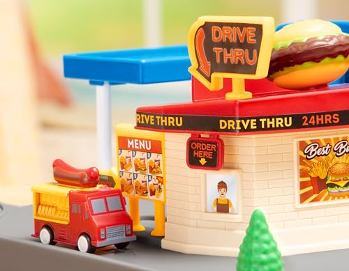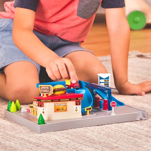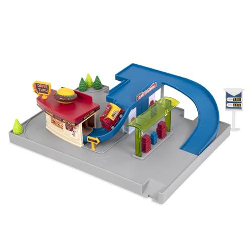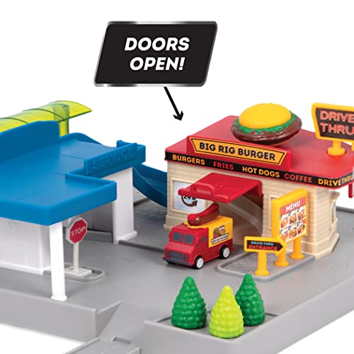 مجموعة لعب تناول الطعام والقيادة من سلسلة الجيب، 5 قطع مع محطة بنزين، شاحنة طعام، واشارات طريق، كرنبيري