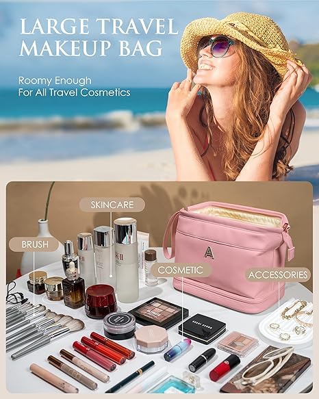 - 【مواد عالية الجودة】حقيبة أدوات الزينة للسفر الخاصة بنا مصنوعة من أقمشة جلدية ناعمة وخفيفة الوزن وعالية الجودة تحمي مكياجك من الخدوش والرذاذ. كما أنها مقاومة للماء، لذلك لا داعي للقلق بشأن تناثر الماء عليها عند غسل يديك.