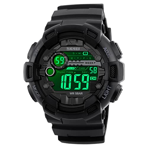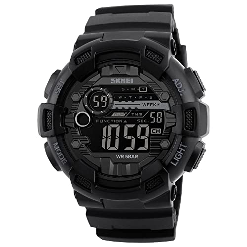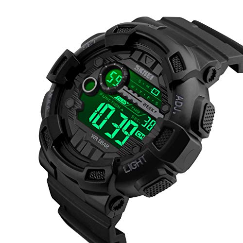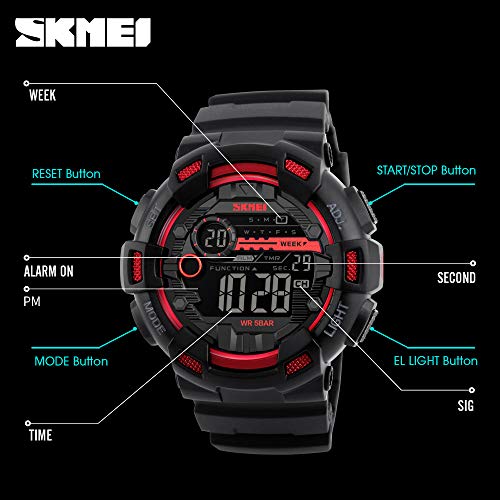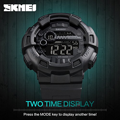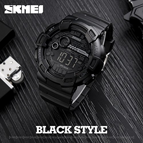 ساعة رياضية ديجيتال عسكرية متعددة الوظائف مقاومة للماء حتى عمق 50 متر واضاءة LED وتوقيت 24 مع خاصية ضبط التوقيت والعد التنازلي وضبط التاريخ والمنبه تلقائيا للرجال من سكماي بسوار أسود