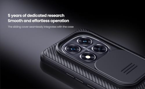 جراب نيلكين لموبايل ريدمي نوت 14 برو بلس شبكة الجيل الخامس 5G مع غطاء كاميرا صلب مصنوع من البولي كربونات، لون أسود