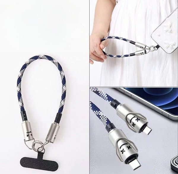 كابل USB نوع C / نوع لايتنينج، 30 سم (لشحن سريع للموبايل المحمول) متعدد الوظائف (أسود)