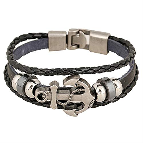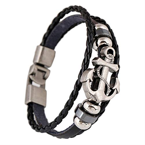 سوار من خليط معدني بتصميم مرساة من الجلد الصناعي وحبل القنب للاولاد - اسود