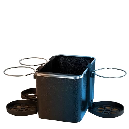 منظم مسند ذراع قابل للتعديل - متعدد الوظائف مع حوامل اكواب مزدوجة، وهو مثالي لزيادة المساحة الى أقصى حد والحفاظ على اساسياتك في متناول اليد أثناء الرحلات. (لون اسود واحد)