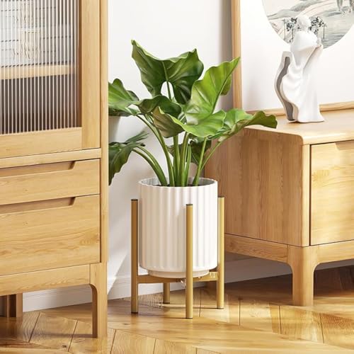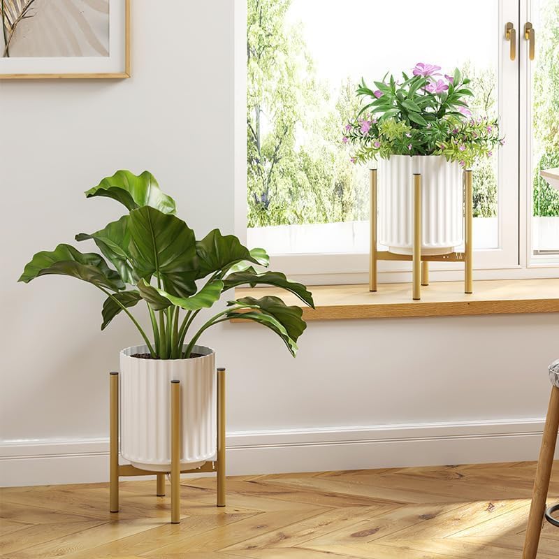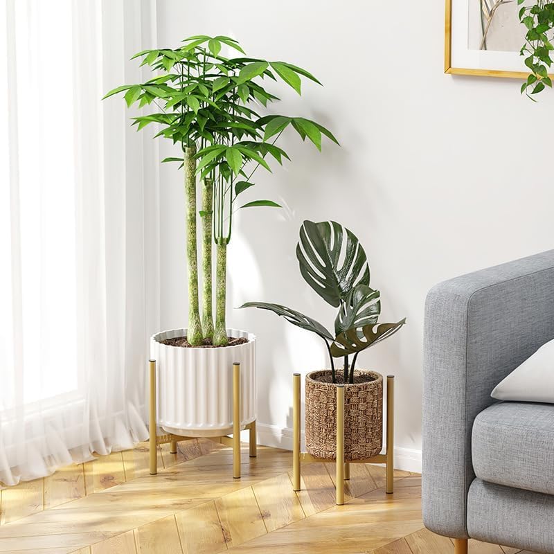 - مقاس قابل للتعديل: عرض حامل النباتات الذهبي من 20.32 سم إلى 30.48 سم، مما يجعله مناسبًا للأواني ذات الأحجام المختلفة.