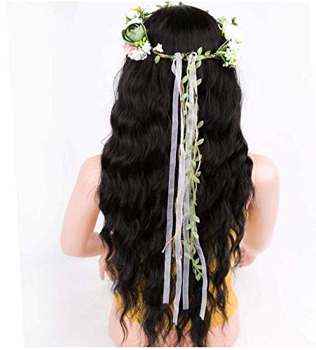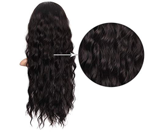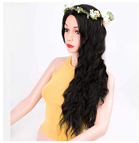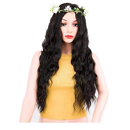 شعر مستعار أسود مموج اصطناعي طويل مجعد شعر مستعار فضفاض مموج الجسم الباروكات مقاومة للحرارة الألياف شعر مستعار كامل للنساء