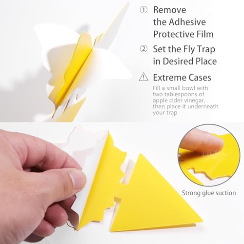 - سهلة الاستخدام: يمكن غرس الجزء السفلي المدبب للمصيدة مباشرة في تربة الأصيص أو الفاكهة، كل ما عليك هو نزع الغطاء الواقي عن الجانبين ببساطة. لا داعي للقلق بشأن فقدان قوة الالتصاق؛ فقط قم باستبدال المصيدة عندما يمتلئ كلا الجانبين بالحشرات