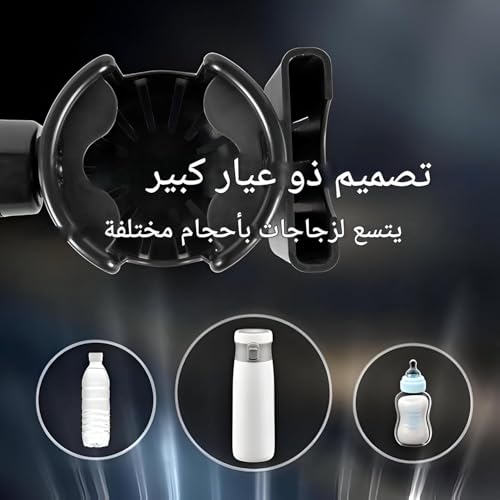 - قابل للتعديل ليناسب جميع الأحجام لا داعي للقلق بشأن مقاس زجاجتك أو نوع جوالك. الحامل مزود بآلية تعديل ذكية تسمح بتوسيع المساحة لتناسب أكواب من 300 مل حتى 750 مل، وهواتف من 4.5 إنش حتى 6.5 إنش.