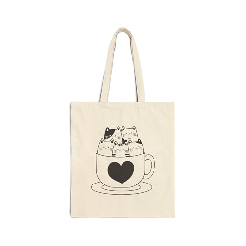 توتي باج - شنطة قماش بيج بسحاب Cat heart Cute Cats Funny Cat Tote Bag With Zipper-691