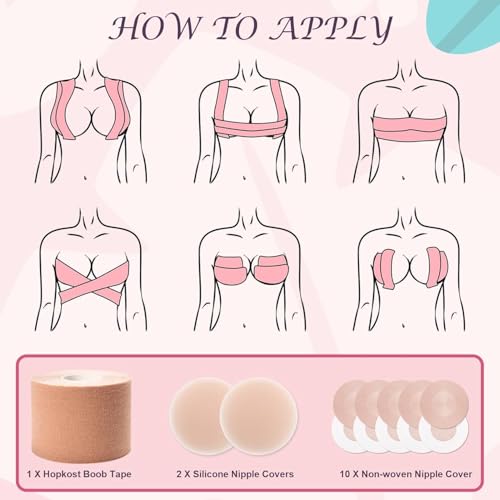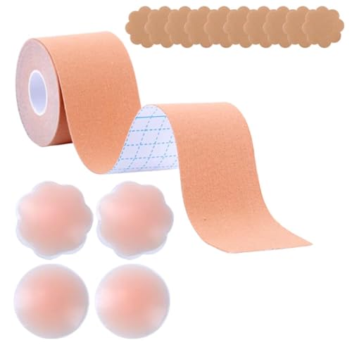 fashion mania Breast Tape Breast Lift Skin +1 pair round 1 pair pollen 10 piece flower Cream Patch box for A-G cup beige