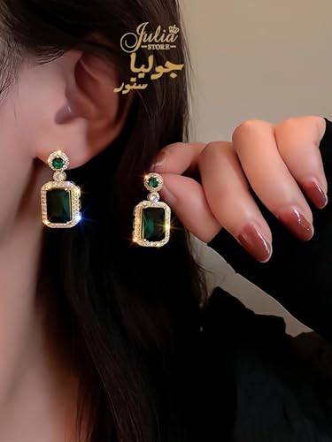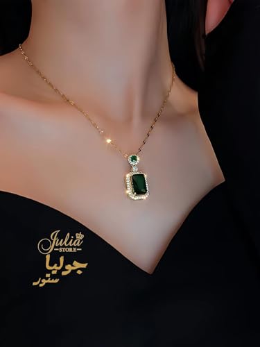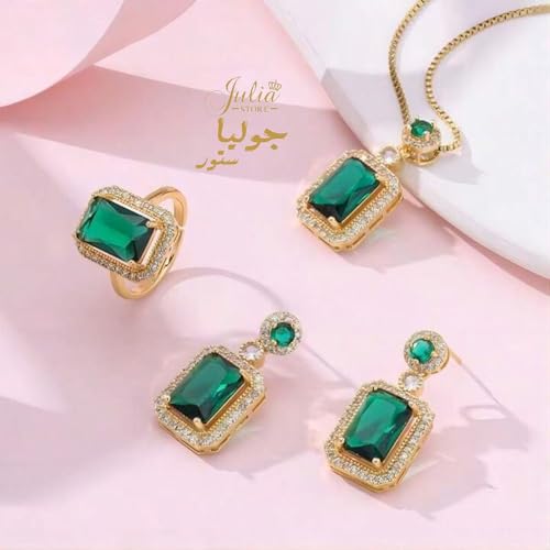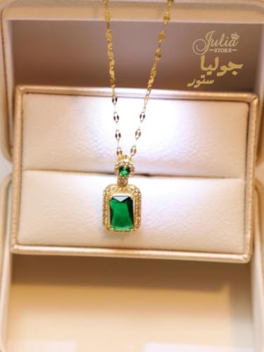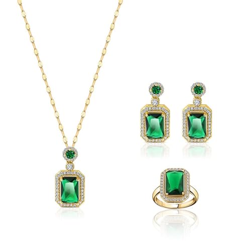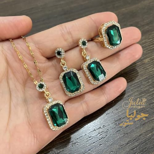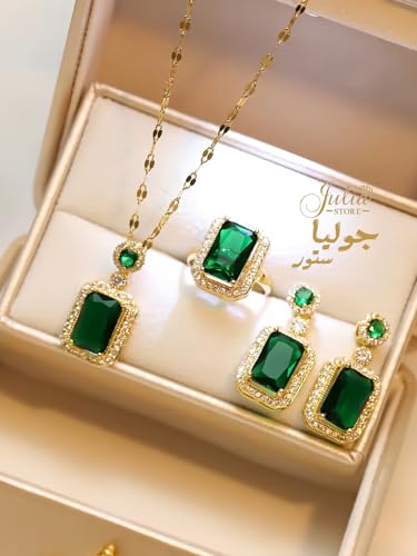 طقم مجوهرات من سلسلة وحلق من فولاذ مقاوم للصدأ مطلي بالذهب عيار 18 قيراط مرصع بحجر الراين والزركونيا الأخضر الصناعي للنساء من جوليا ستور، 3 قطع