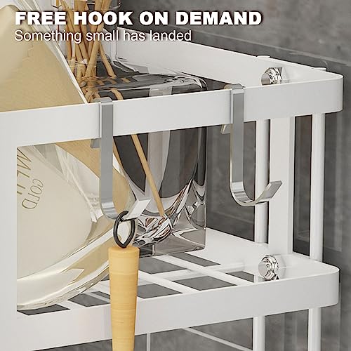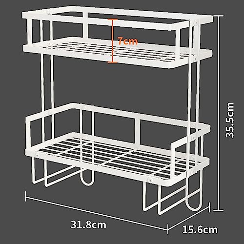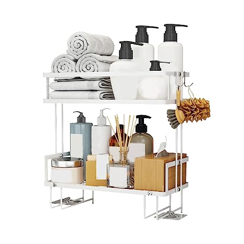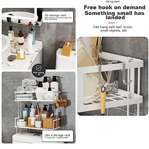 رف تخزين فوق المرحاض منظم حمام من طبقتين بدون تجميع سعة تخزينية مطوية مع خطافات يناسب معظم الدش أبيض