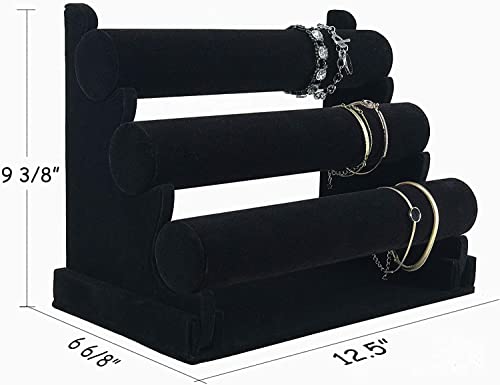 حامل اساور من 3 طبقات ومنظم مجوهرات مخملي عرض قابل للفصل شجرة لتنظيم الساعات اسود 12 اتراوكس خشب مصنع