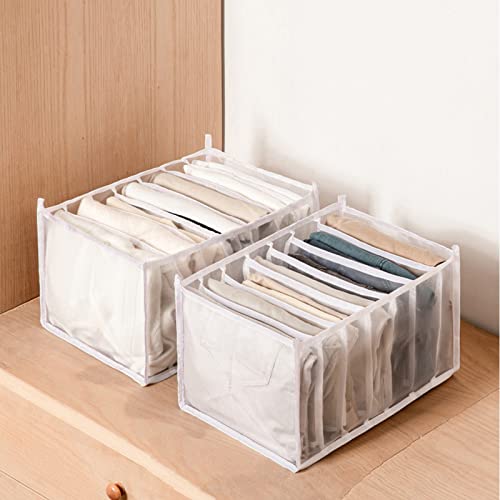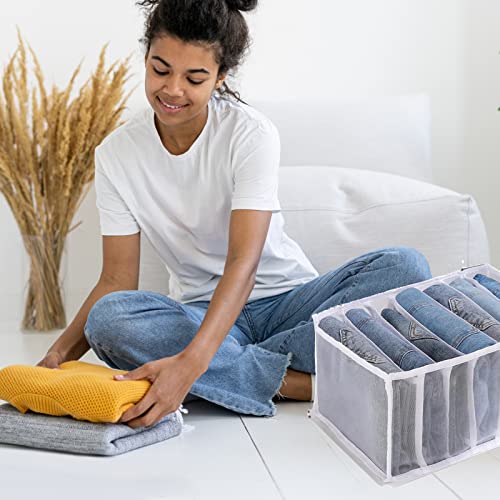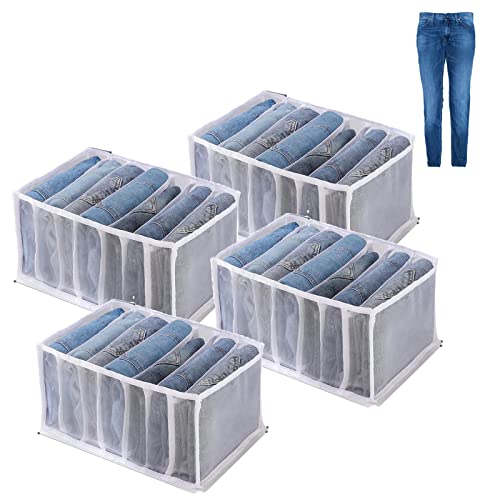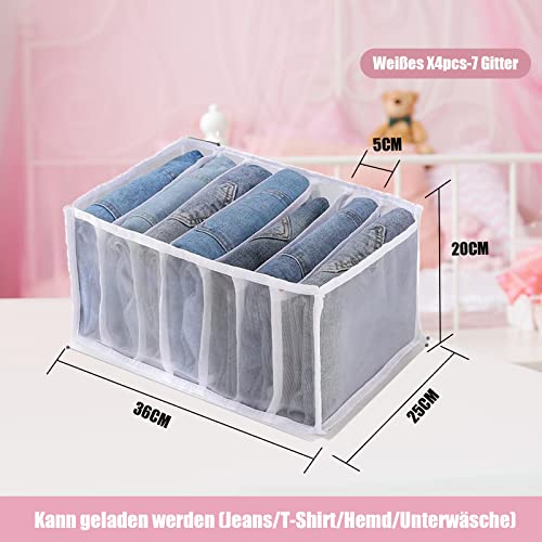 منظم أدراج جينز، صندوق تخزين شبكي قابل للطي للأدراج في دولاب الملابس مع 7 مساحات تخزين للبناطيل والتيشيرتات وحمالات الصدر والكرافتات من افنيكود، 4 قطع (أبيض)
