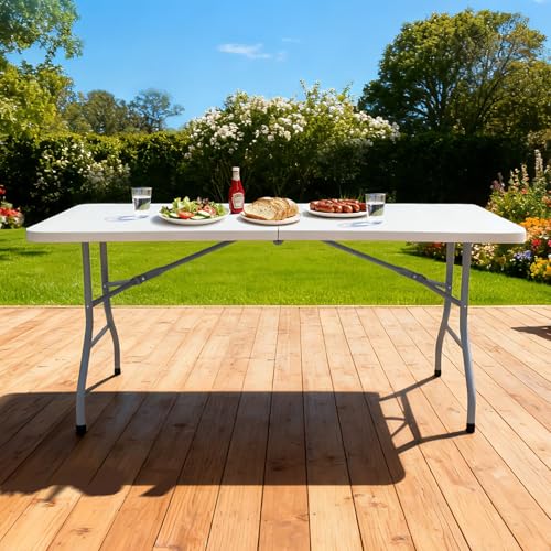 طاولة قابلة للطي، حامل بلاستيكي للاستخدام الداخلي والخارجي للنزهات والشواء والحفلات 180CZ من لاكهاو، جرانيت أبيض، 1.8 م