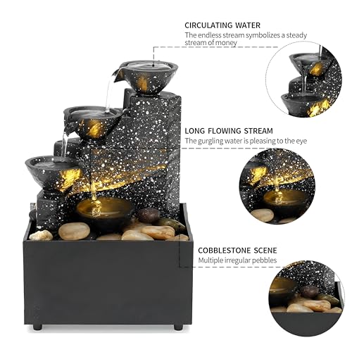 نافورة مهدئة - شلال صغير بإضاءة ليد وأصوات مائية مريحة، مثالية لديكور المنزل والمكتب، سهلة التجميع، رائعة لتوفير مساحة هادئة