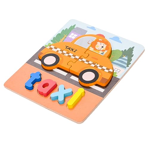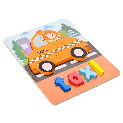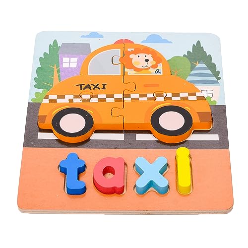 لوح بازل خشبي مربع ثلاثي الابعاد بتصميم سيارة اجرة وكلمة لتنمية مهارات الاطفال مجموعة من 10 قطع مقاس 20×15 سم - متعدد الالوان، طفل