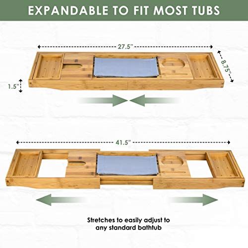 - علبة لجميع ملحقات الحمام الخاصة بك - علبة حوض الاستحمام هذه قابلة للتوسيع وتمتد لتناسب أي حوض استحمام. إنها واسعة بما يكفي لاستيعاب زوجين وجميع ملحقات الحمام الخاصة بك مثل المناشف والصابون والشامبو وأدوات النظافة والشموع وأكثر من ذلك