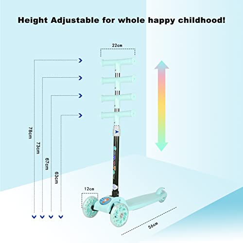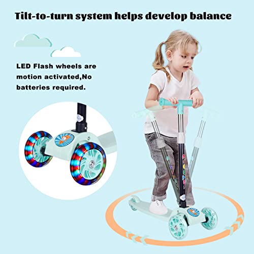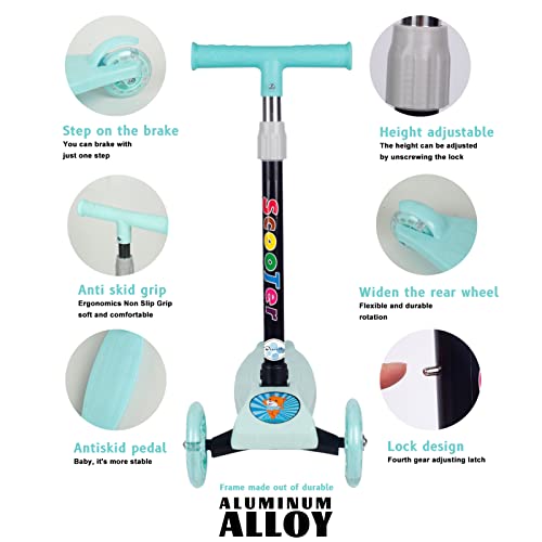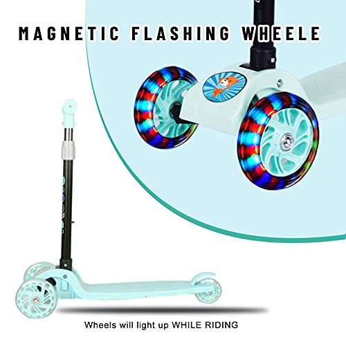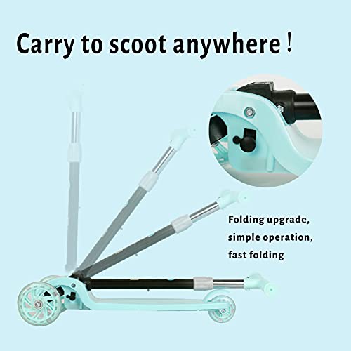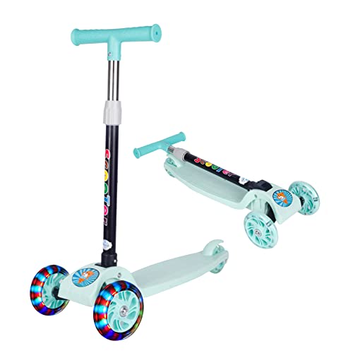 سكوتر بيوينتي القابل للطي بثلاث عجلات للأطفال، سكوتر للأطفال الصغار مع عجلات مضيئة LED، ارتفاع قابل للتعديل وأفضل الهدايا للأطفال البنات والأولاد (أخضر).