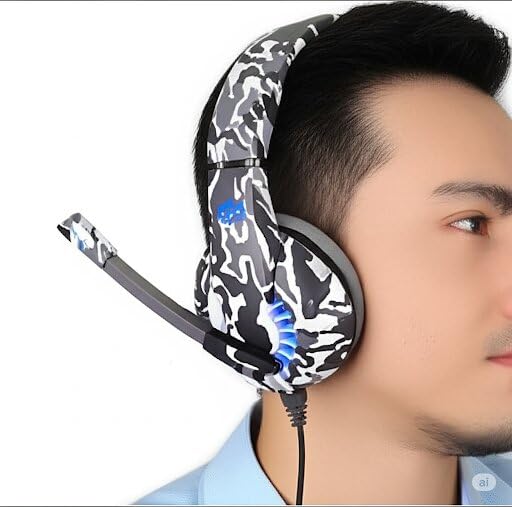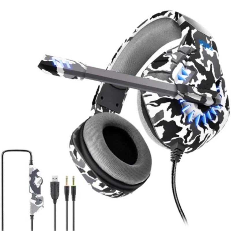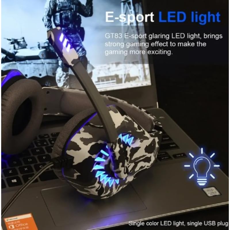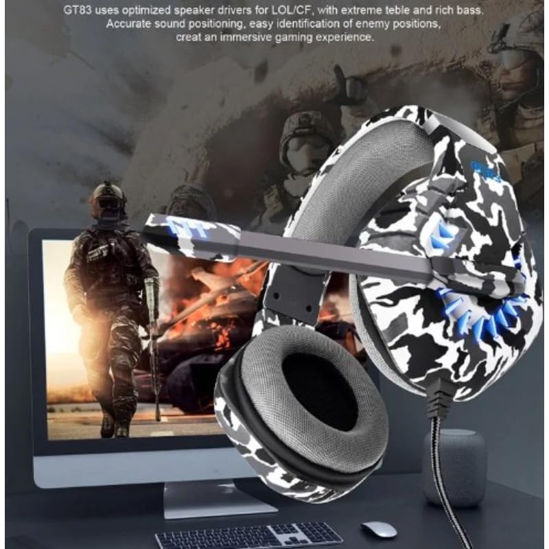 سماعة رأس سلكية GT-83 مخصصة للألعاب الإلكترونية ومزودة بميكروفون مانع للضوضاء وسادات أذن مريحة وأداء عملي ومتوافقة مع مختلف أجهزة الكمبيوتر واللاب توب من اوفلينج، رمادي مموه