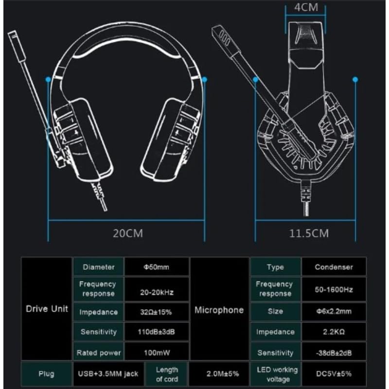 - متوافق مع الأجهزة المختلفة: تعمل سماعة الرأس مع الكمبيوتر واللاب توب وPS4 وأي جهاز.