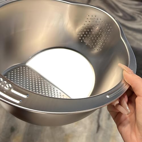 وعاء غسيل - وعاء مصفاة مطبخ متعدد الوظائف لغسل وشطف الأرز والخضروات والفواكه، مثالي للمطابخ المشغولة وعشاق الطبخ