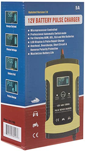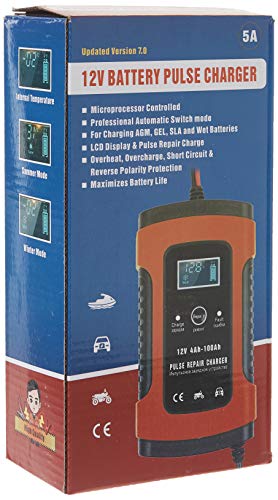 شاحن إصلاح نبضي 12 فولت 5 امبير مع شاشة LCD، شاحن بطارية للموتوسيكلات والسيارات، شاحن بطارية لبطارية حصيرة الزجاج الممتصة والبطارية الجل والبطارية الرطبة وبطارية الرصاص الحمضية 12 فولت من فوكسير
