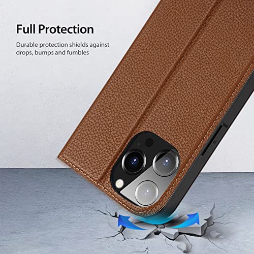 جراب حماية مزود بحامل كروت مغناطيسي وقابل للطي مصنوع من الجلد الصناعي الفاخر لموبايل ابل ايفون 14 برو ماكس دوكس دوسيس بني بولي يوريثين اللدن بالحرارة جلد صناعي