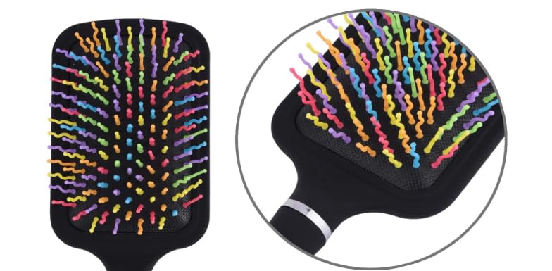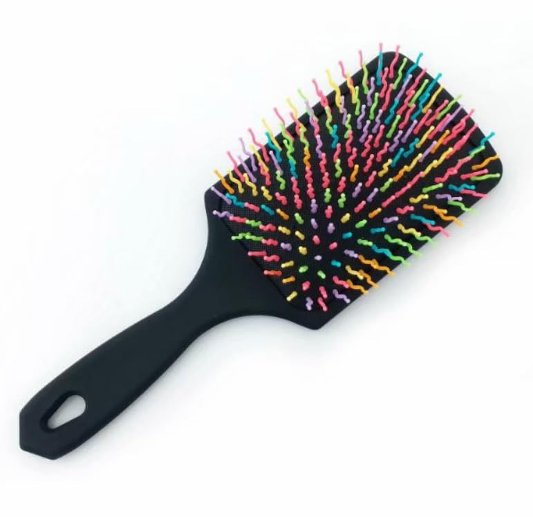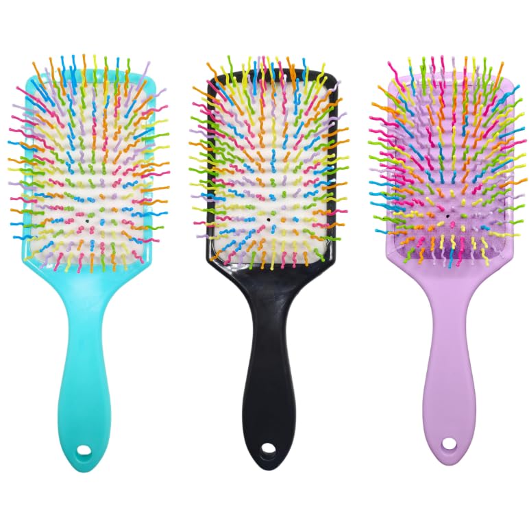 فرشاة تمشيط مموجة بشعيرات ملوّنة لفك تشابك الشعر وتنعيمه للنساء، بشعيرات نايلون ناعمة مناسبة للتصفيف والفرد، متعددة الألوان، عبوة من قطعة واحدة