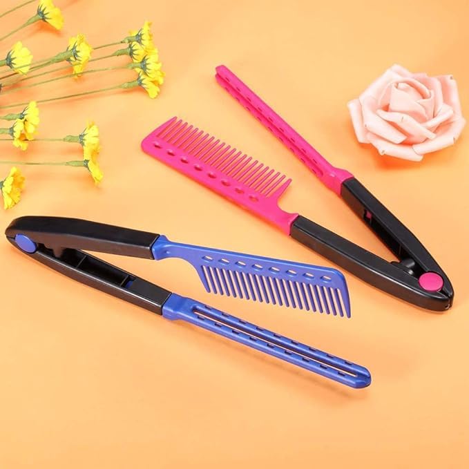 مشط تصفيف الشعر على شكل حرف V لصالونات التجميل لتصفيف الشعر وفرده المعقد للاستخدام المنزلي وفي صالونات التجميل متعدد الألوان