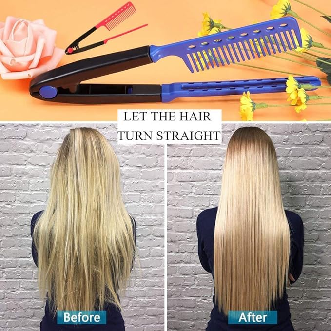 - دعي عقد الشعر: هذا المشط المستقيم على شكل حرف V يمشط شعرك قبل عملية الفرد، التصميم قوي، يزيل العقد ويترك الشعر مفرودًا