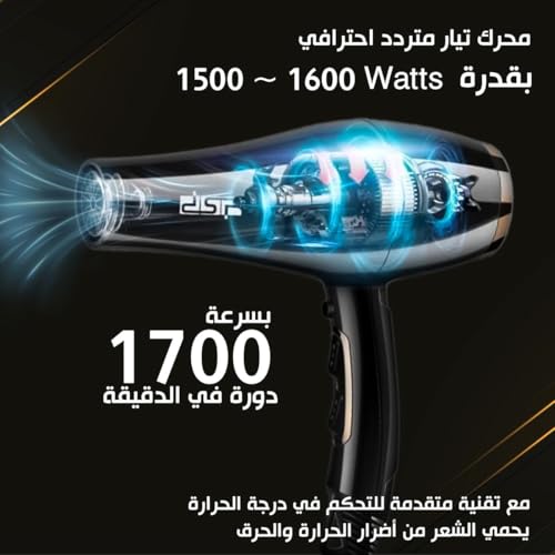مجفف شعر ايوني، 1600 وات، مع محرك نحاسي تيار متردد 5413، سرعتين وإعدادين لدرجة الحرارة، 17000 دورة في الدقيقة، لشعر لامع خالٍ من التجعد، موديل 30088