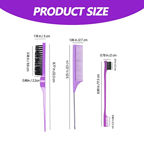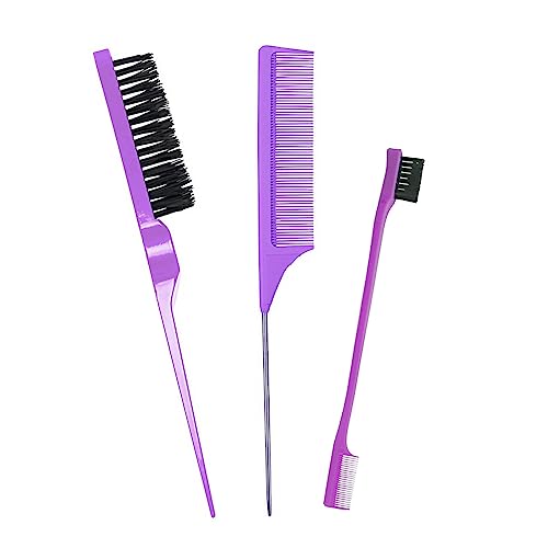 مجموعة فرش تصفيف الشعر، فرشاة شعر ذات شعيرات ناعمة، فرشاة حافة مشط بذيل رفيع لتصفيف الأطراف والخلف، تمشيط الشعر للنساء والفتيات من 3 قطع