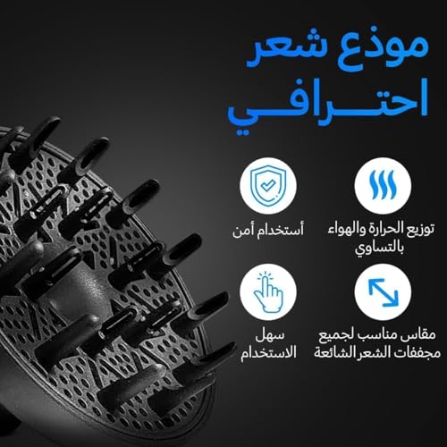ملحق موزع هواء لمجفف الشعر يناسب جميع أنواع المجففات للشعر المجعد والمموج، فوهة لزيادة الكثافة لتجفيف سريع والتحكم في تجعد الشعر