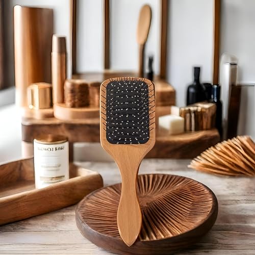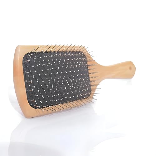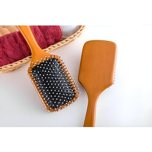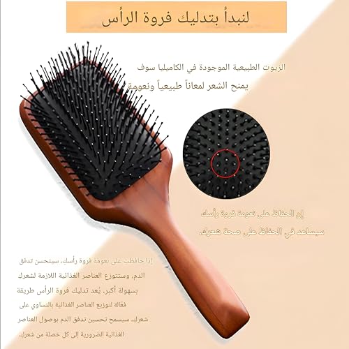 فرشاة تصفيف - مقبض خشبي انيق مع شعيرات مستديرة مرنة لفك تشابك الشعر بسرعة ولطيفة وتعزيز اللمعان والنعومة للشعر الطويل والكثيف