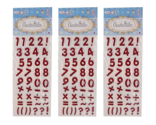 ستيكر لاصق طراز 21915-2 - 3A-4645-Red32 من البلاستيك بتصميم الأرقام الإنجليزية للأطفال من ثري ايه، مجموعة من 3 قطع، لون أحمر