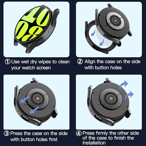 - الموديلات المتوافقة: تم تصميم هذا الجراب الفاخر مع واقي الشاشة خصيصًا لساعة سامسونج جالاكسي 6 مقاس 44 ملم. 【غير متوافق مع ساعة سامسونج جالكسي 4 أو 5 مقاس 44 ملم】. يرجى التأكد من أن الغطاء الواقي الصحيح مع واقي الشاشة بناءً على طراز ساعة سامسونج الخاصة بك.
