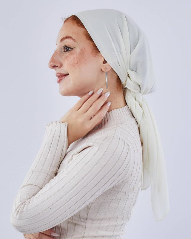 سكارف كريب شيفون بنمط مربع سادة للنساء من تاي شوب